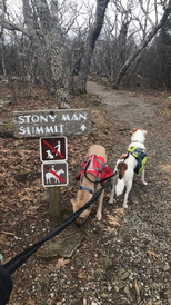Now listen, I didn't know at the time that dogs weren't allowed on this trail, (and for good reason I might add), I somehow missed the first sign at the beginning. I saw the no dogs sign at the intersection of the Appalachian Trail and the Stony Man trail, but we were a little more than halfway there, and I wasn't about to turn back and ditch my plans to see this thing. (I mean, who was gonna stop us anyway, right?) Plus, the dogs go everywhere with me anyway, and I know when it's safe and when it gets too dangerous for my pups. I did not let them anywhere near the rocky edge. They stayed on the pathway, and sat patiently for my dad and I to take a few photos and return to them. On our way out, we saw a couple with their pair of dogs too, so we were relieved to see we weren't the only ones breaking the rules, but at least we did it 50% by accident, in a way.